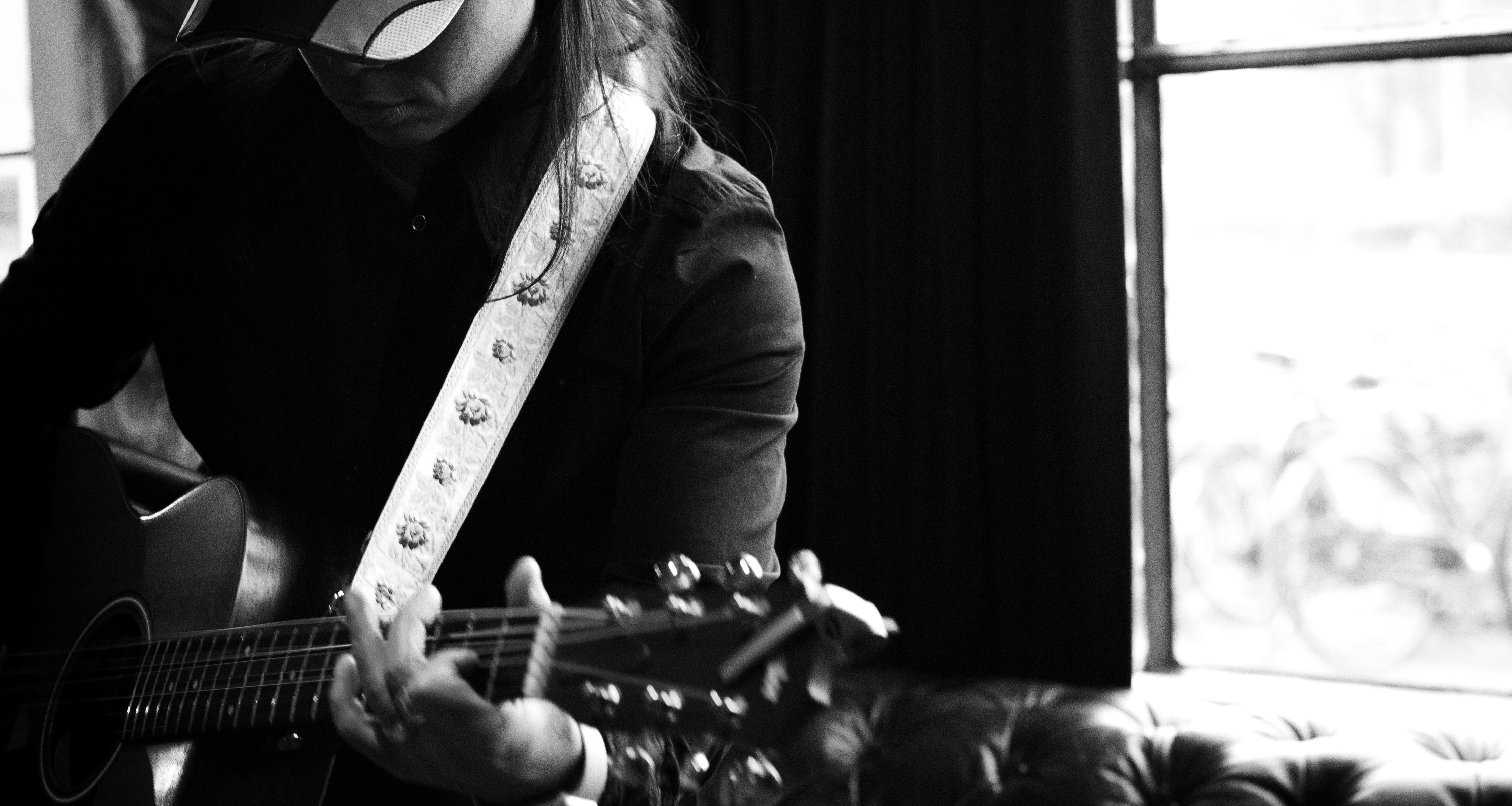 De foto's die ik bij mijn vorige iteratie heb gebruikt waren ook te scherp. Dit paste niet bij de blauwe gitaar. Met behulp van filters is het een geheel geworden.